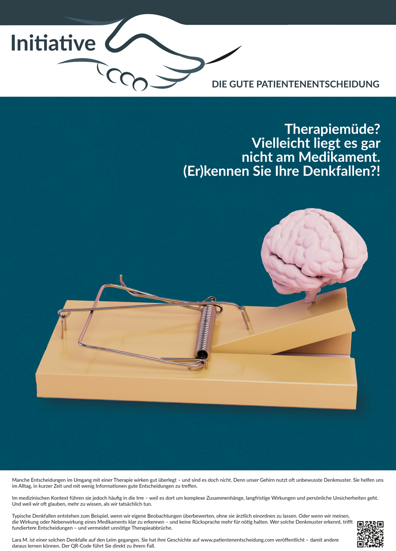 Die Botschaft an Patient:innen lautet: Wir alle nutzen unbewusste Denkmuster beim Entscheiden. Sie helfen uns, im Alltag schnell und intuitiv zu urteilen.