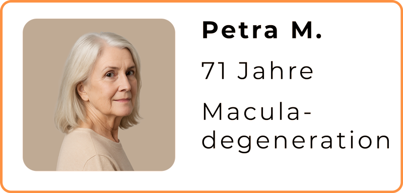 Petra M., 71 Jahre alt, lebt mit einer altersbedingten Makuladegeneration. Die Diagnose kam nicht überraschend – die Sehkraft hatte nachgelassen, Lesen wurde anstrengender, Gesichter verschwommen. Ihr Augenarzt erklärte ihr das weitere Vorgehen: eine Serie von Injektionen ins Auge, mit einem modernen Medikament, einem sogenannten VEGF-Inhibitor. Dieser Wirkstoff könne den Verlauf stoppen, nicht heilen. Petra verstand das – so glaubte sie zumindest.