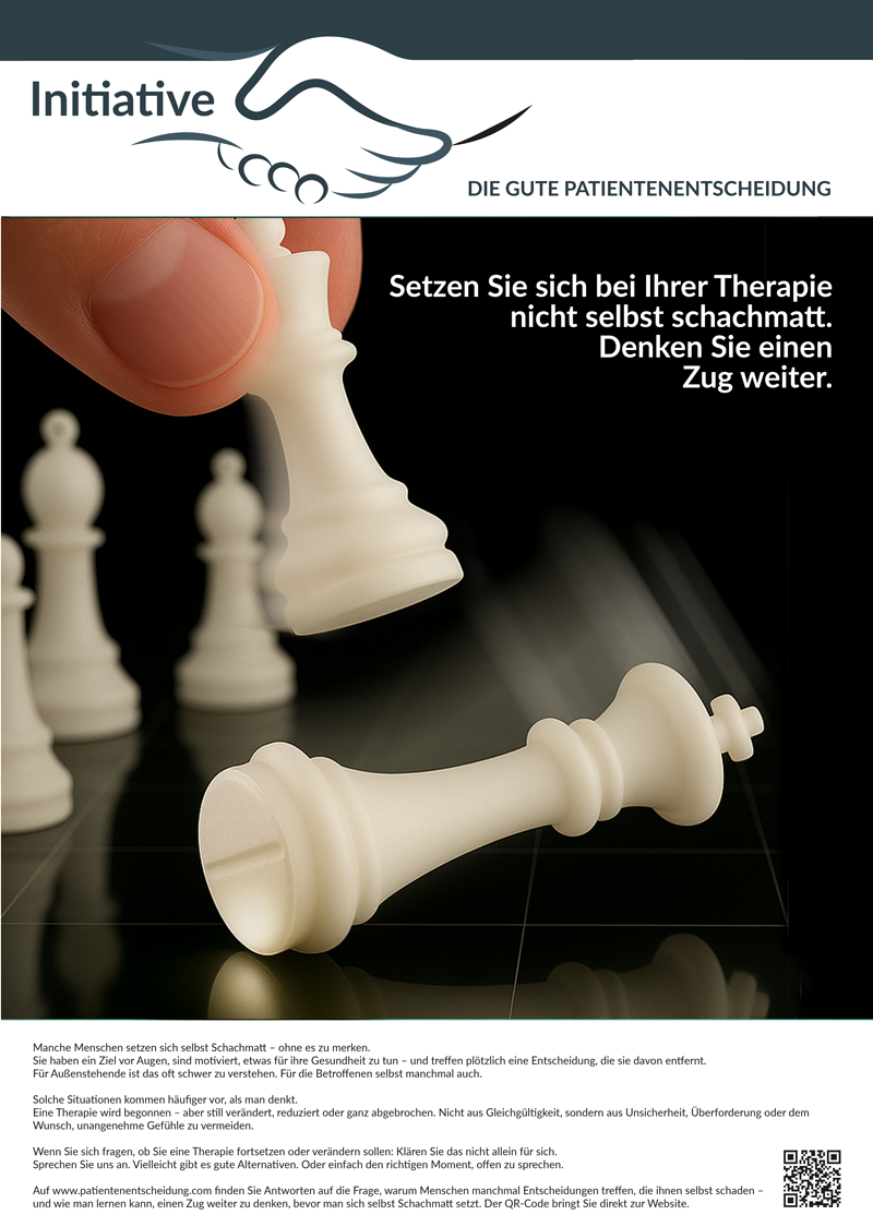 Die Botschaft des Posters an diese Patienten lautet: „Setzen Sie sich bei Ihrer Therapie nicht selbst schachmatt. Denken Sie einen Zug weiter.“
