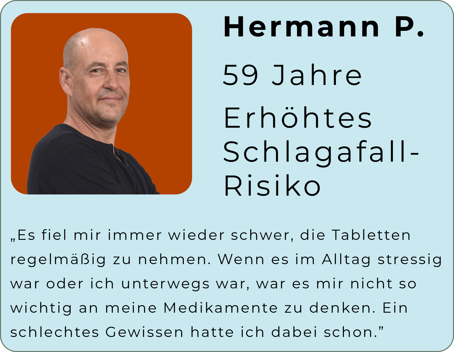 Hermann war geschockt, aber ruhig. Sein Arzt erklärte ihm, dass man das Risiko mit einem blutverdünnenden Medikament deutlich senken könne. Hermann bekam den Wirkstoff Apixaban, einen modernes Gerinnungshemmer.