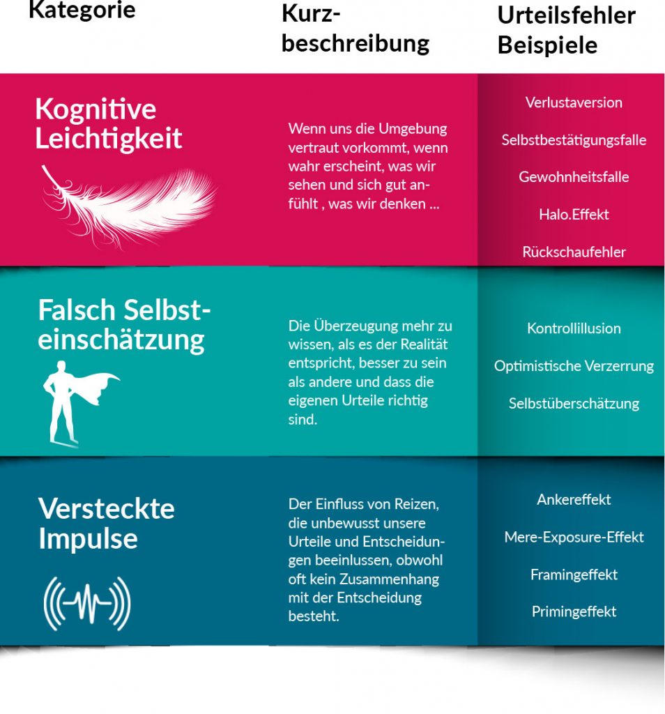 👉 Die nebenstehende Grafik zeigt drei Hauptkategorien solcher Urteilsverzerrungen: